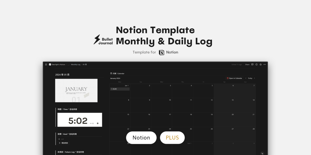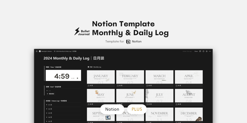 Notion BulletJournal Monthly & Daily Log Template|子彈筆記日月誌